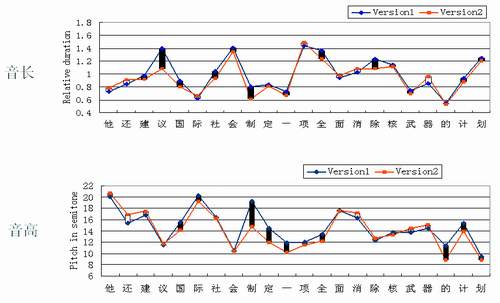 MSRA的研究人員發(fā)現(xiàn):兩遍錄音的整體音高分布是相當一致的。但是,如果比較兩遍錄音中相應單元的音高,也會看到明顯的差異。也就是說,雖然受到特定的上下文和語義表達的約束,音段音高的取值也有相當大的變化范圍,其可變范圍可以大到所有音段的整體變化范圍的45%左右。