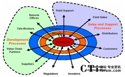不同公司,生辰八字不同,發(fā)家史不同,決定了企業(yè)利益戰(zhàn)略點的不同,對統(tǒng)一通信的市場切入點和定位目標(biāo)就存在一些差異。軟件商采用以桌面軟件為基礎(chǔ),從上往下滲透的策略,設(shè)備商采用從基礎(chǔ)架構(gòu)出發(fā),從下往上突破的策略,但對統(tǒng)一通信的基本認(rèn)識可統(tǒng)歸為:以用戶為中心,實現(xiàn)跨時空的無限溝通。這里拋棄了網(wǎng)絡(luò)、終端、融合、平臺等技術(shù)層面的東西,而是完全從業(yè)務(wù)層面迎合了企業(yè)客戶的基本需求,企業(yè)聽到了自然心動!耙赂幌刃蘼贰,企業(yè)要發(fā)展,就必須先修好這條通信大道。從中,我們也可看出統(tǒng)一通信不是一種技術(shù),也不是一項應(yīng)用,而是一種需求、一種企業(yè)對網(wǎng)絡(luò)、通信技術(shù)成熟發(fā)展之后的需求滿足的期望。此外,通過對這些主要廠家的UC解決方案進(jìn)行分析,也可以發(fā)現(xiàn),無論大家的口號怎樣,PPT里的網(wǎng)絡(luò)架構(gòu)如何多變,卻一致地采用SIP協(xié)議進(jìn)行會話控制,用IP協(xié)議進(jìn)行數(shù)據(jù)傳輸,通過應(yīng)用服務(wù)器(或類似網(wǎng)元)提供各種統(tǒng)一通信功能。