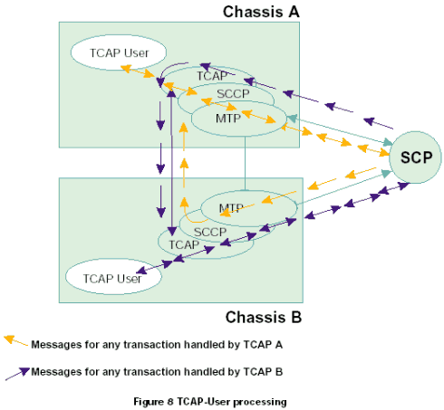 每個(gè)TCAP將所有接收的信息傳遞到同機(jī)箱中的TCAP用戶任務(wù)中,根據(jù)每一個(gè)TCAP中不同的應(yīng)用層或用戶,將TCAP層的應(yīng)用程序發(fā)送的傳送會話和組件原語傳遞給正確的TCAP。在一個(gè)雙系統(tǒng)環(huán)境中,接收的消息可以在任何MTP和SCCP層上共享。因此,一個(gè)TCAP層接收由其他TCAP處理的應(yīng)用在激活事務(wù)上的TCAP消息是可能的。